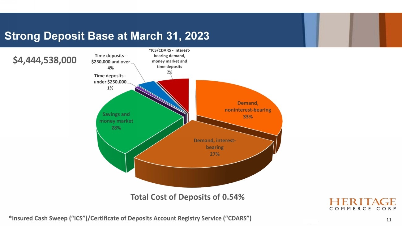 Prepared for the North Bay Advisory Board Performance Metrics 10 14.41% 13.09% 9.04% 11.86% 15.57% 16.71% 1.19% 1.25% 0.83% 0.96% 1.27% 1.52% 0.00% 1.00% 2.00% 3.00% 0% 5% 10% 15% 20% 2018 2019 2020 2021 2022 1Q23 ROA ROE Annualized return on average tangible common equity Annualized return on average tangible assets