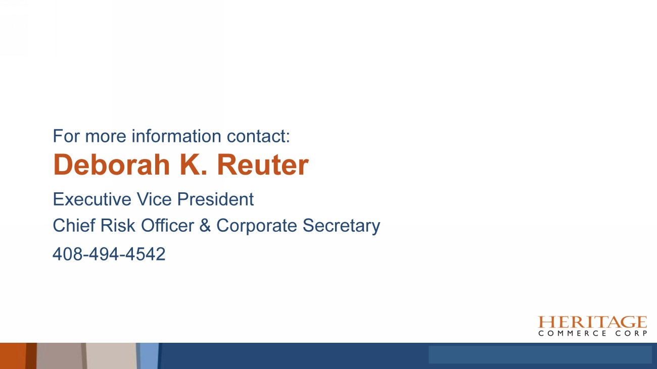 For the North Bay Advisory Board For more information contact: Deborah K. Reuter Executive Vice President Chief Risk Officer & Corporate Secretary 408 - 494 - 4542