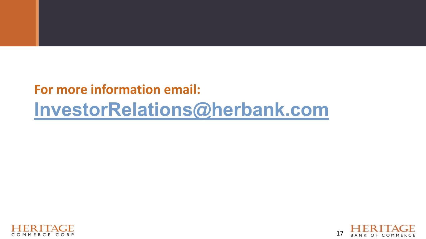 For more information email: InvestorRelations@herbank.com 17