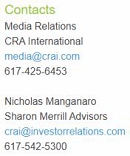 CRA’s announced changes include three new committee chair assignments. Effective March 1, 2024, Christine Detrick will chair the Nominating and Corporate Governance Committee, replacing CRA’s Lead Director, William Concannon, who has served as chair since 2009. Mr. Concannon will continue to serve as Lead Director and as a member of the Nominating and Corporate Governance Committee. Also effective March 1, Richard Booth will chair the Audit Committee, replacing Robert Holthausen, who has served as chair since 2015. Mr. Holthausen will continue to serve as a member of the committee. Additionally, Ms. Detrick will replace Mr. Holthausen as a member of the Executive Committee. Lastly, effective July 18, 2024, Heather Tookes will chair the Compensation Committee, replacing Thomas Avery, who has served as chair since 2017. Mr. Avery will continue to serve as a member of the committee.