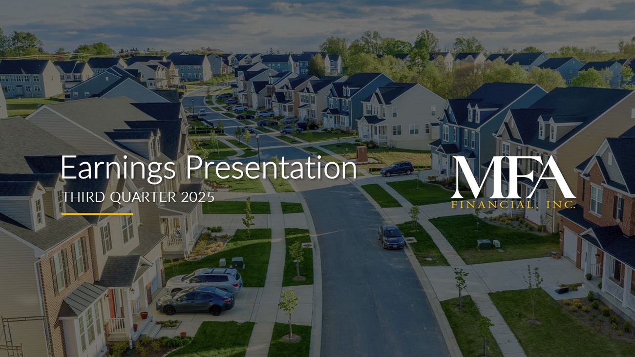 21 Endnotes 1) Economic book value (EBV) is a non - GAAP financial measure. Refer to slide 18 for further information regarding the calculation of this measure and a reconciliation to GAAP book value. 2) Total economic return is calculated as the quarterly change in EBV plus common dividends declared during the quarter divided by EBV at the start of the quarter. 3) Recourse leverage is the ratio of MFA’s financing liabilities (excluding non - recourse debt) to net equity. Including securitize d debt, MFA’s overall leverage ratio at Sept. 30, 2025 was 5.5x. 4) GAAP net income is presented per basic common share. GAAP net income was $0.35 per diluted common share. 5) Distributable earnings is a non - GAAP financial measure. Refer to slide 17 for further information regarding the calculation of this measure and a reconciliation to GAAP net income. Distributable earn in gs is presented per basic common share. 6) Origination amount is based on the maximum loan amount, which includes amounts initially funded plus any committed but undraw n a mounts. $148.5M of funded originations occurred during Q3 2025 and $77.4M of draws were funded during Q3 2025 on previously originated Transitional loans. 7) Amounts presented reflect the aggregation of fair value and carrying value amounts as presented in MFA’s consolidated balance sh eet at Sept. 30, 2025. 8) Non - MTM refers to financing arrangements not subject to margin calls based on changes in the fair value of the financed resident ial whole loans. Such agreements may experience changes in advance rates or collateral eligibility due to factors such as changes in the delinquency status of the financed residential whole loans. 9) Excludes Agency - eligible investor loans, which had a fair value of $51.9M at Sept. 30, 2025. 10) Loan - to - value (LTV) ratio reflects principal amortization and estimated home price appreciation (or depreciation) since acquisit ion. Zillow Home Value Index (ZHVI) is utilized to estimate updated LTVs for Non - QM, SFR and Legacy RPL/NPL assets. For Transitional loans, LTV reflects either the current unpaid principal balance (UPB) di vided by the most recent as - is property valuation available or the maximum UPB divided by the most recent after repaired value (ARV) available. 11) State concentration measured by loan balance. All states in “Other” category have concentrations below 5%. 12) CPR includes all principal repayments. 13) Balance sheet carrying value of real estate owned (REO) properties at Sept. 30, 2025. 14) Undrawn construction funds for performing loans at Sept. 30, 2025. Borrowers must be current in order to receive unfunded commitments. 15) Percentage of Transitional loan portfolios extended beyond original maturity date at Sept. 30, 2025. 16) Current coupon Agency MBS spread over blended 5Y and 10Y Treasury yields. Data sourced from Bloomberg and presented in basis poi nts. 17) Transitional loans are excluded from the calculation of potential upside in Economic book value. 18) Collateral UPB includes cash for Transitional loan securitizations. 19) Bonds sold relative to certificates issued. 20) Represents status at Sept. 30, 2025 of all Legacy RPL/NPL loans ever acquired. Non - performing status includes all active loans greater than 60 days delinquent. Liquidated/REO status includes both sold and active REO properties as well as short payoff liquidations and loans sold to third - parties.