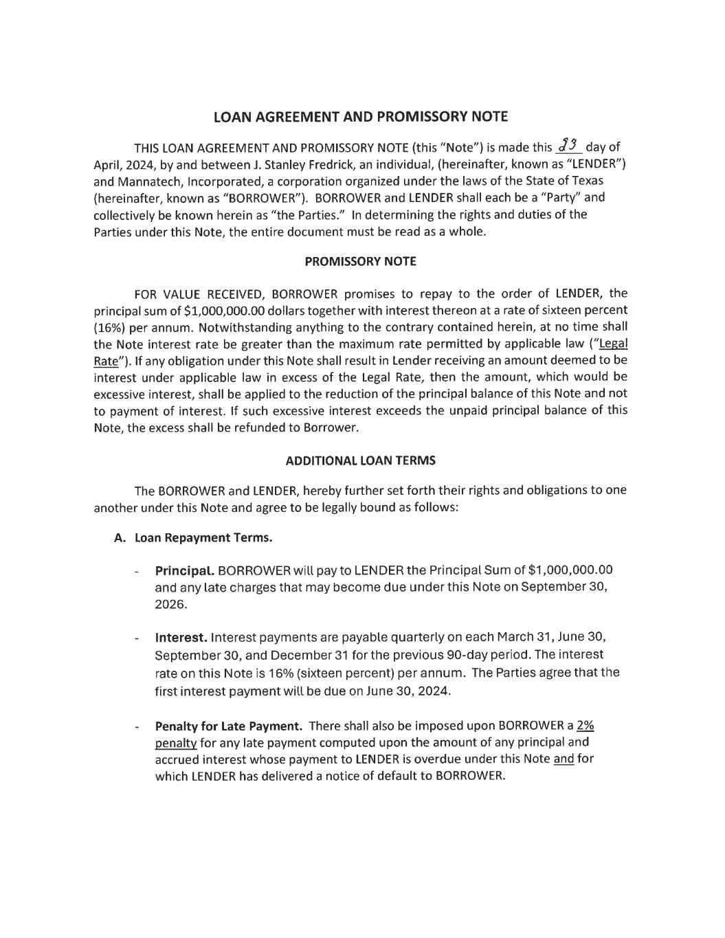 EX-10.18 3 jsfredrickloanagreementa.htm EX-10.18 jsfredrickloanagreementa