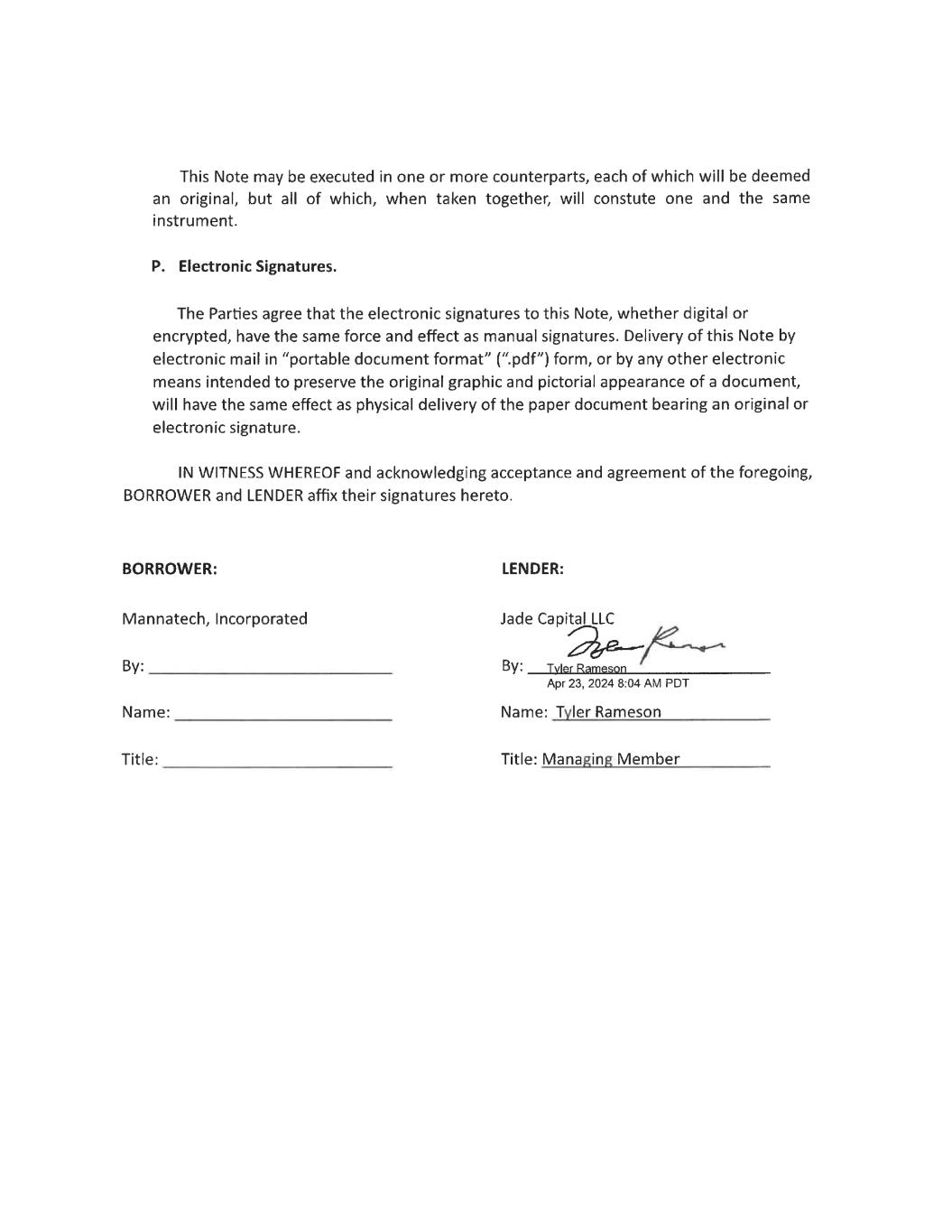 Intentionally Blank Mannatech Signature Page Follows