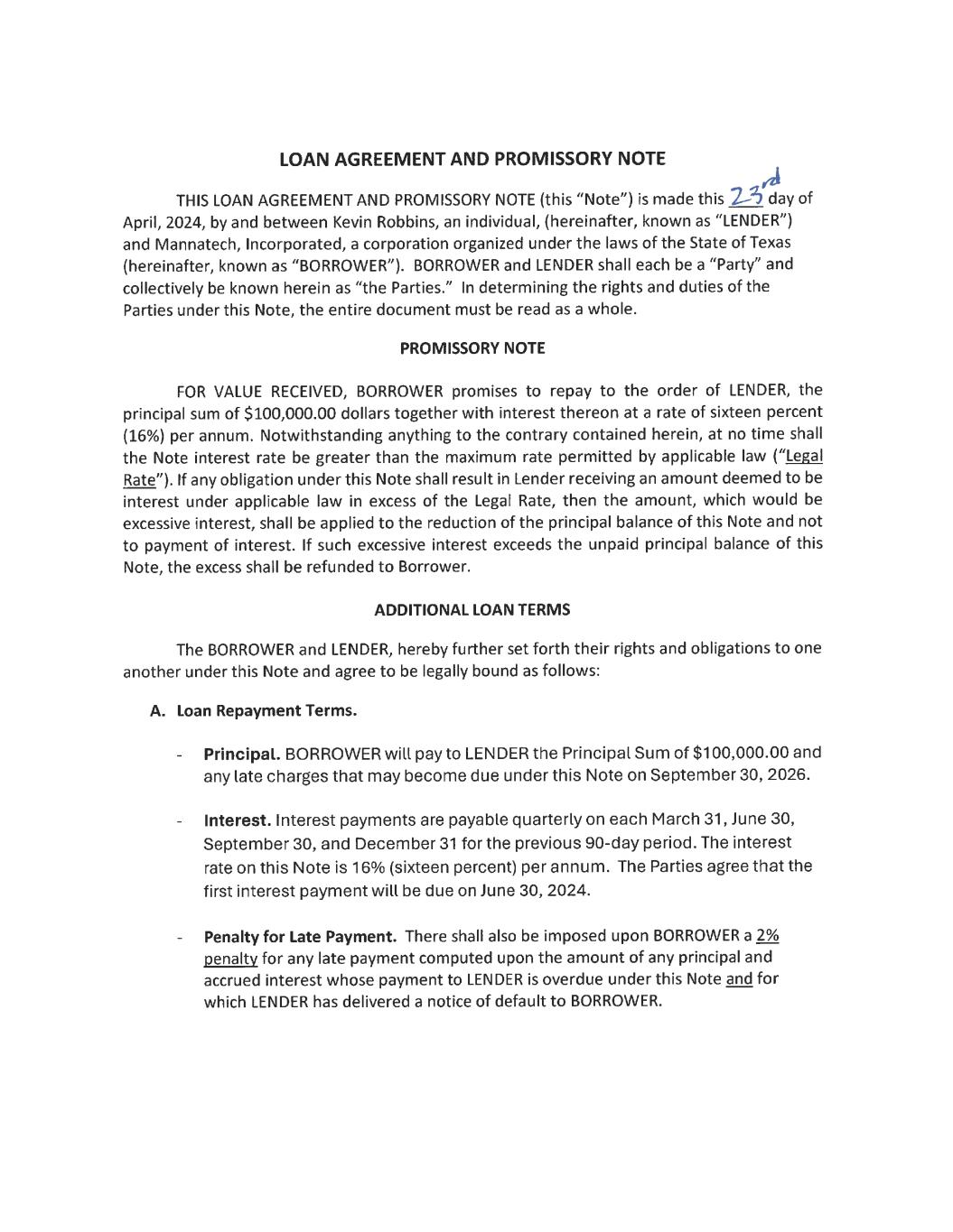 EX-10.19 4 robbinsloanagreementandp.htm EX-10.19 robbinsloanagreementandp