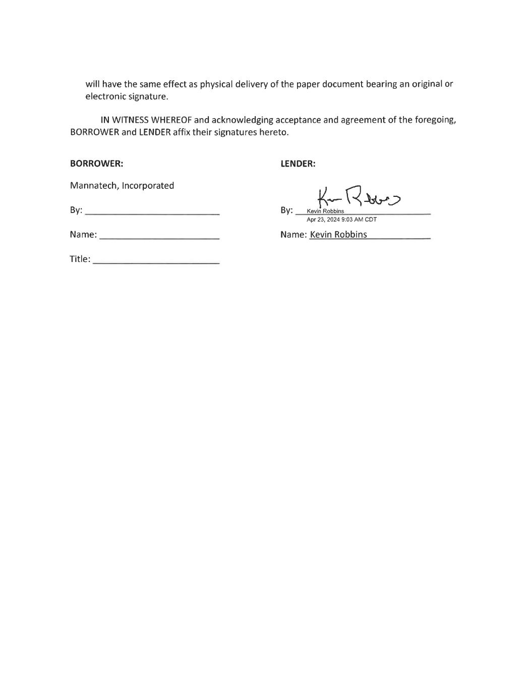 Intentionally Blank Mannatech Signature Page Follows
