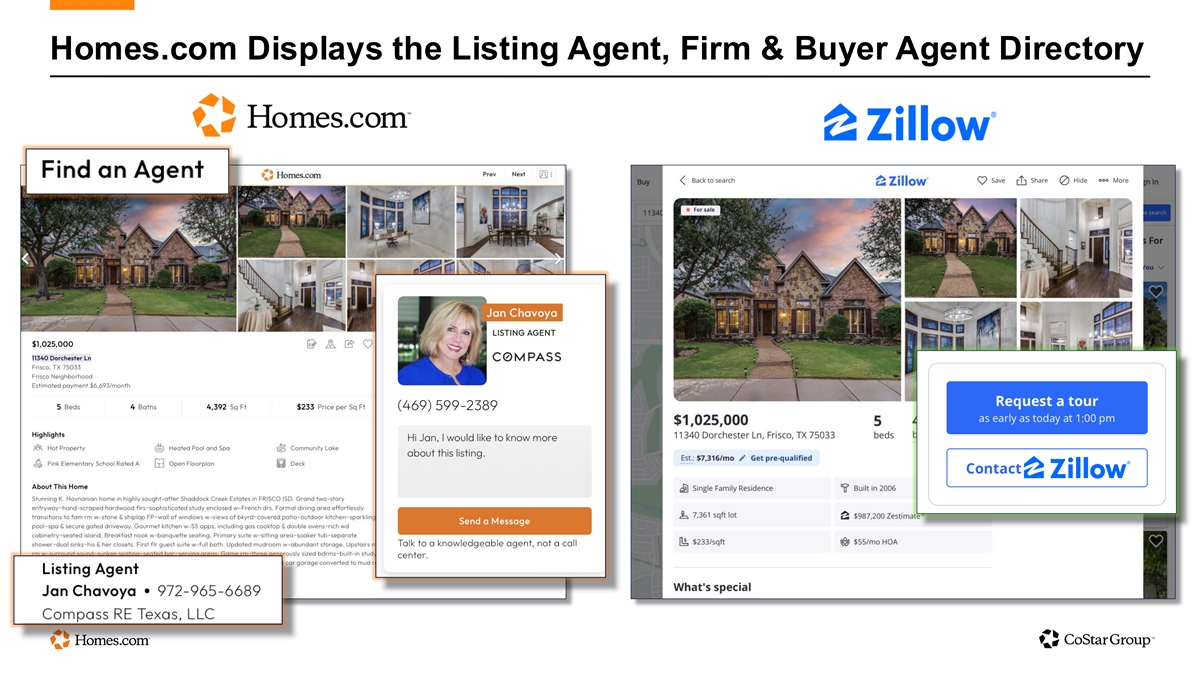 Homes.com Displays the Listing Agent, Firm & Buyer Agent Directory