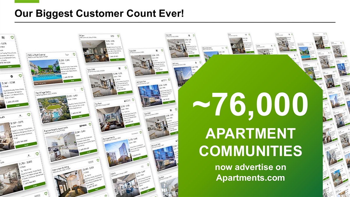 Our Biggest Customer Count Ever! ~76,000 APARTMENT COMMUNITIES now advertise on Apartments.com