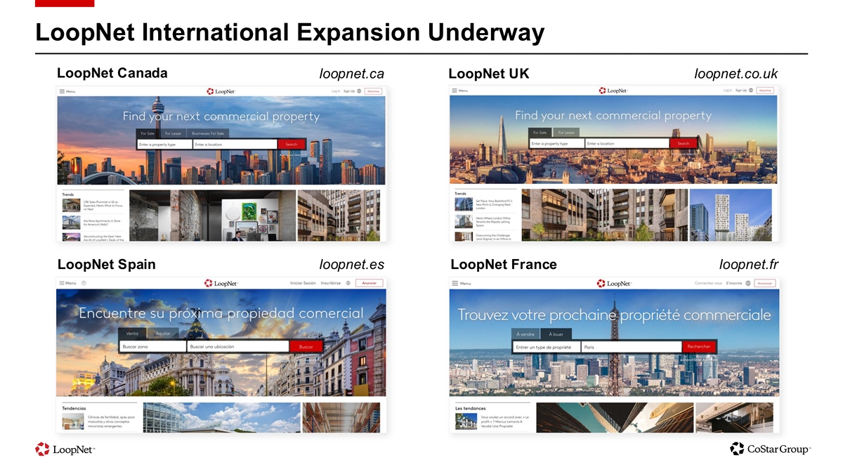 LoopNet International Expansion Underway LoopNet Canada loopnet.ca LoopNet UK loopnet.co.uk LoopNet Spain loopnet.es LoopNet France loopnet.fr