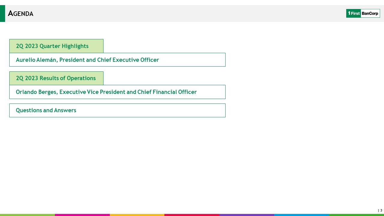 Agenda  2Q 2023 Quarter Highlights  Aurelio Alemán, President and Chief Executive Officer  2Q 2023 Results of Operations  Orlando Berges, Executive Vice President and Chief Financial Officer  Questions and Answers