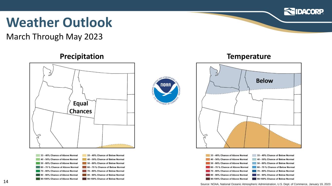 Precipitation Weather Outlook March Through May 2023 Temperature 14 Source: NOAA, National Oceanic Atmospheric Administration, U.S. Dept. of Commerce, January 19, 2023