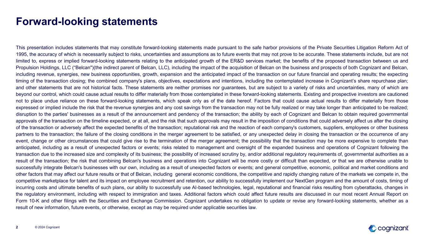 Cognizant to acquire Belcan Expanding advanced Engineering R&D capabilities while diversifying into high growth aerospace & defense sector June 10, 2024 © 2024 Cognizant Exhibit 99.2
