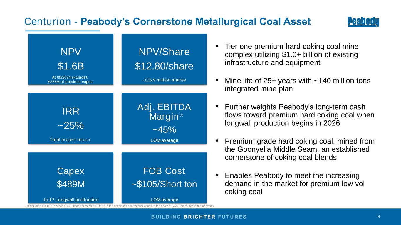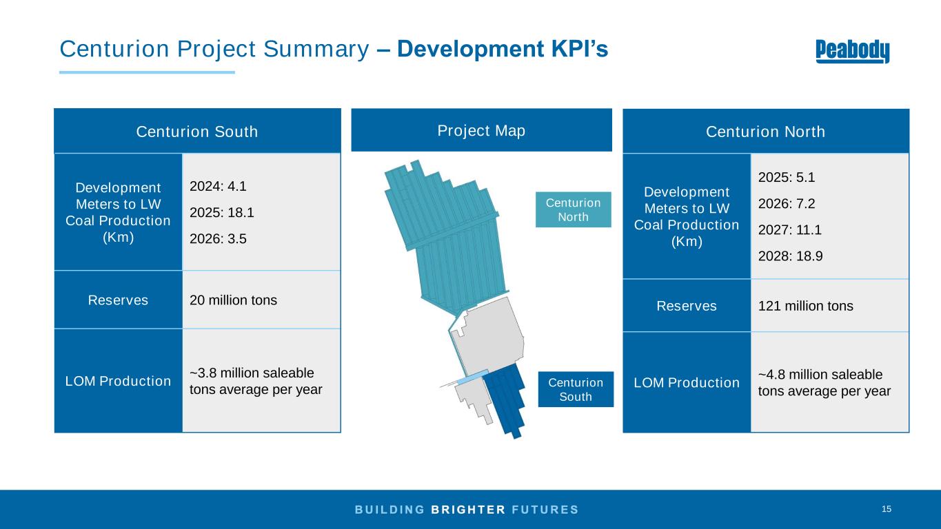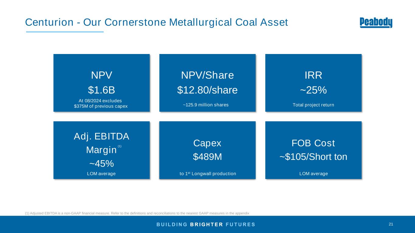 B U I L D I N G B R I G H T E R F U T U R E S Centurion Peabody’s Cornerstone Metallurgical Coal Asset October 14, 2024
