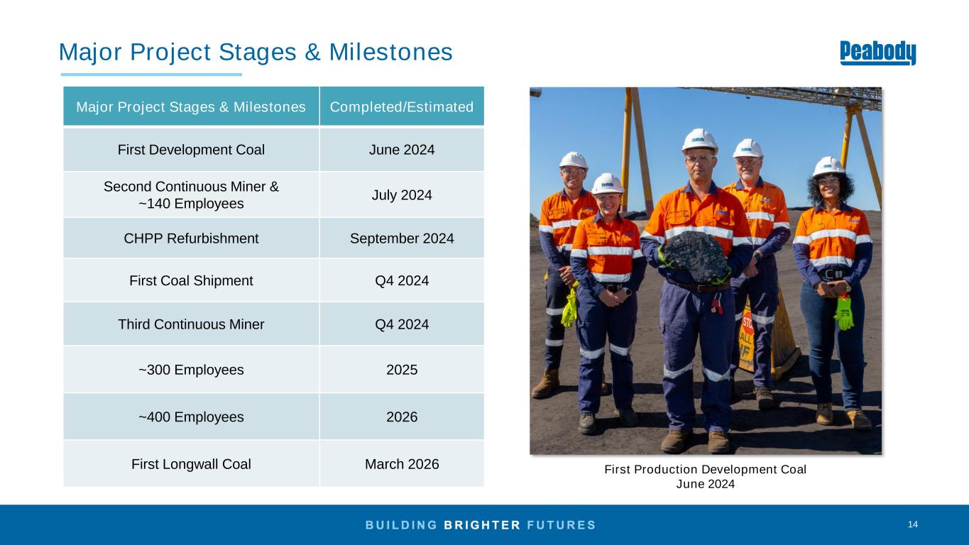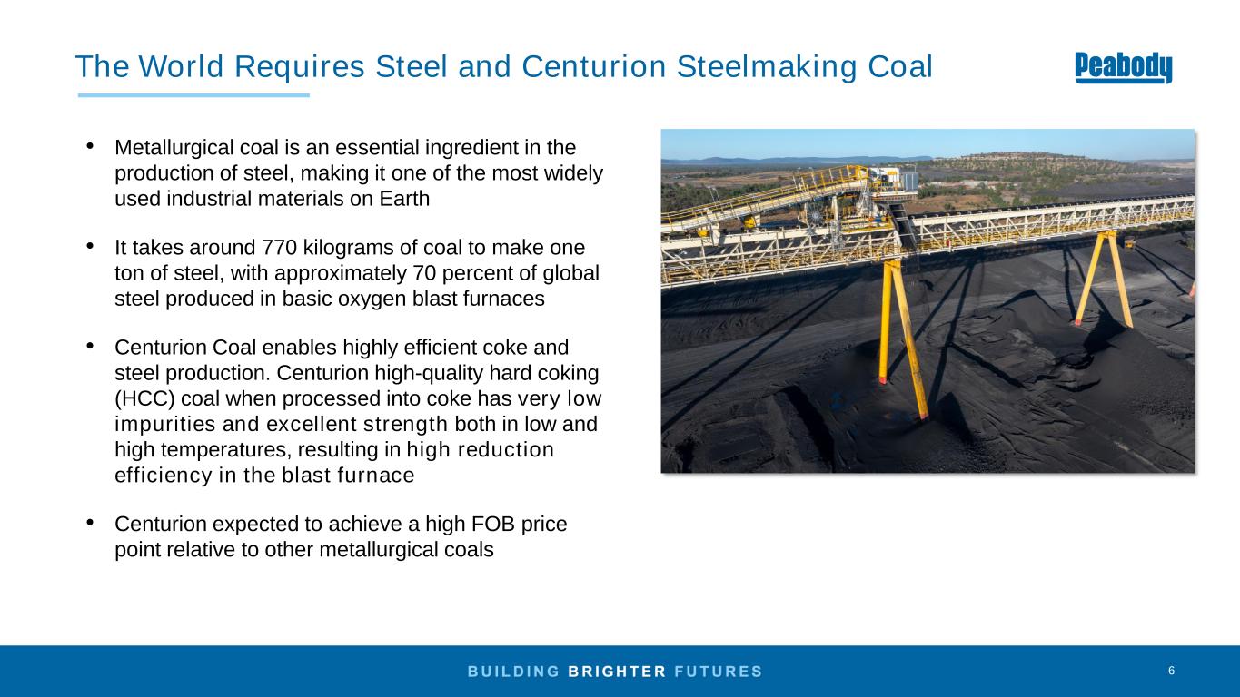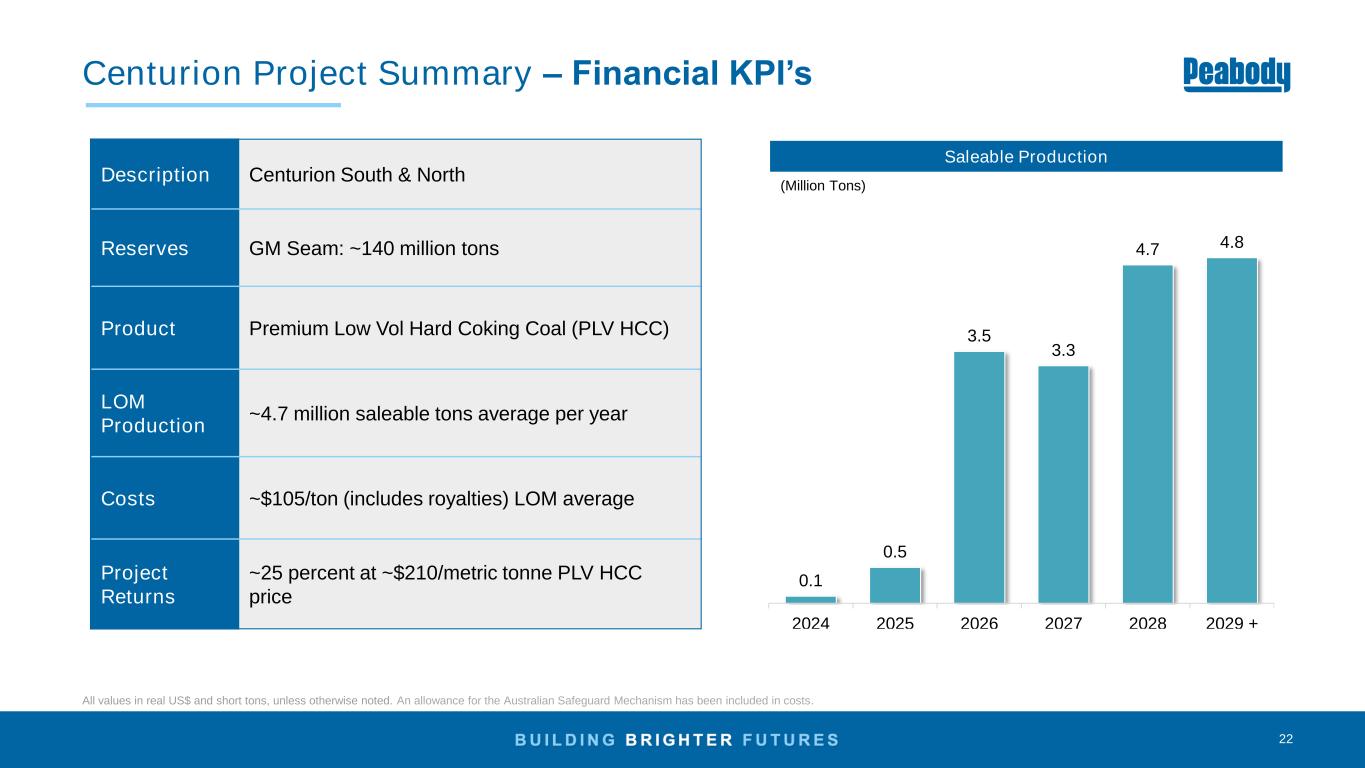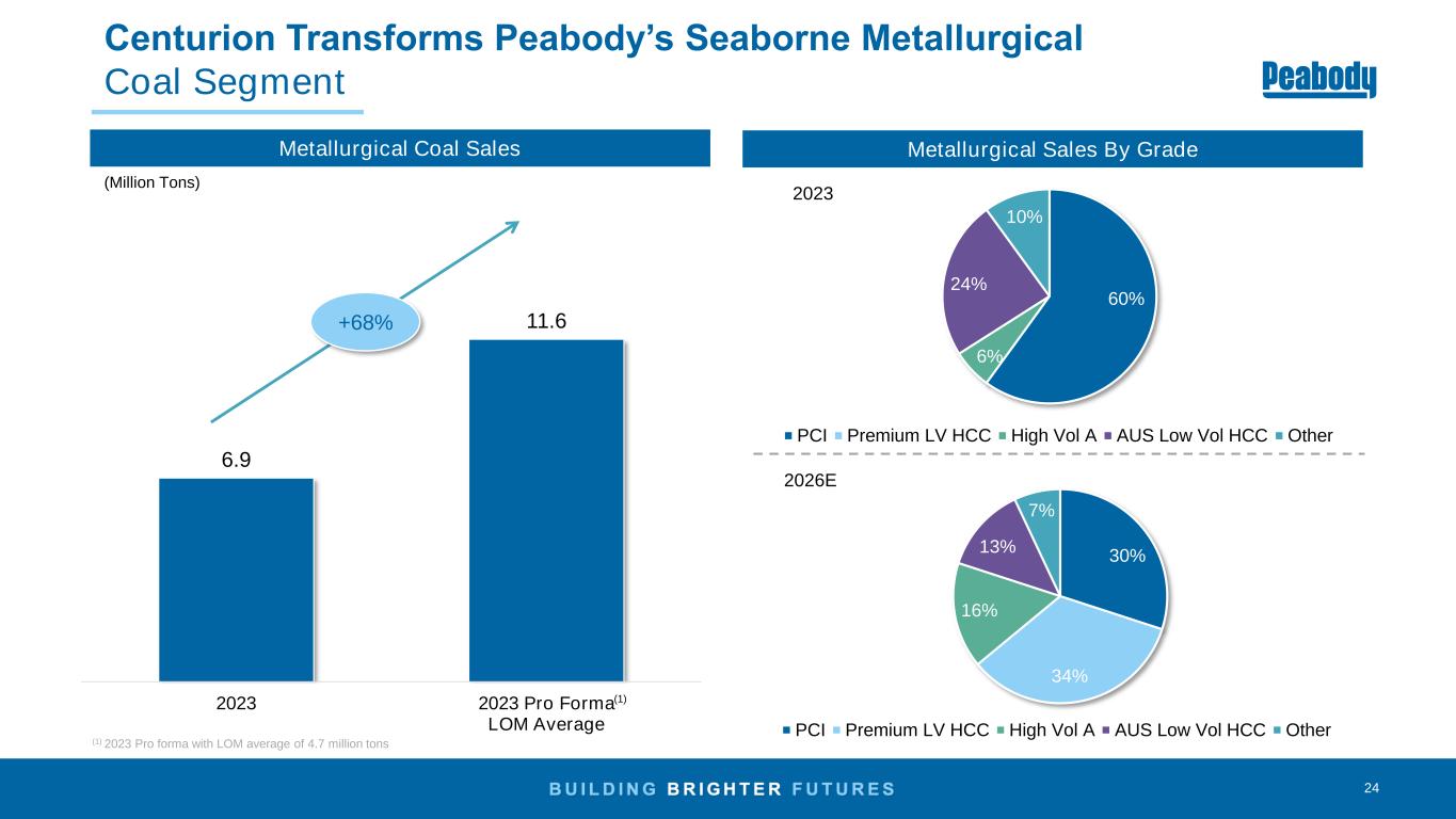 B U I L D I N G B R I G H T E R F U T U R E S Centurion Peabody’s Cornerstone Metallurgical Coal Asset October 14, 2024