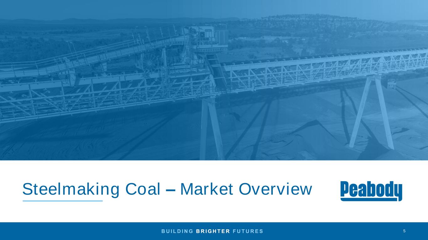 4 Centurion - Peabody’s Cornerstone Metallurgical Coal Asset • Tier one premium hard coking coal mine complex utilizing $1.0+ billion of existing infrastructure and equipment • Mine life of 25+ years with ~140 million tons integrated mine plan • Further weights Peabody’s long-term cash flows toward premium hard coking coal when longwall production begins in 2026 • Premium grade hard coking coal, mined from the Goonyella Middle Seam, an established cornerstone of coking coal blends • Enables Peabody to meet the increasing demand in the market for premium low vol coking coal NPV $1.6B NPV/Share $12.80/share IRR ~25% Adj. EBITDA Margin ~45% Capex $489M FOB Cost ~$105/Short ton At 08/2024 excludes $375M of previous capex ~125.9 million shares Total project return LOM average to 1st Longwall production LOM average (1) Adjusted EBITDA is a non-GAAP financial measure. Refer to the definitions and reconciliations to the nearest GAAP measures in the appendix (1)