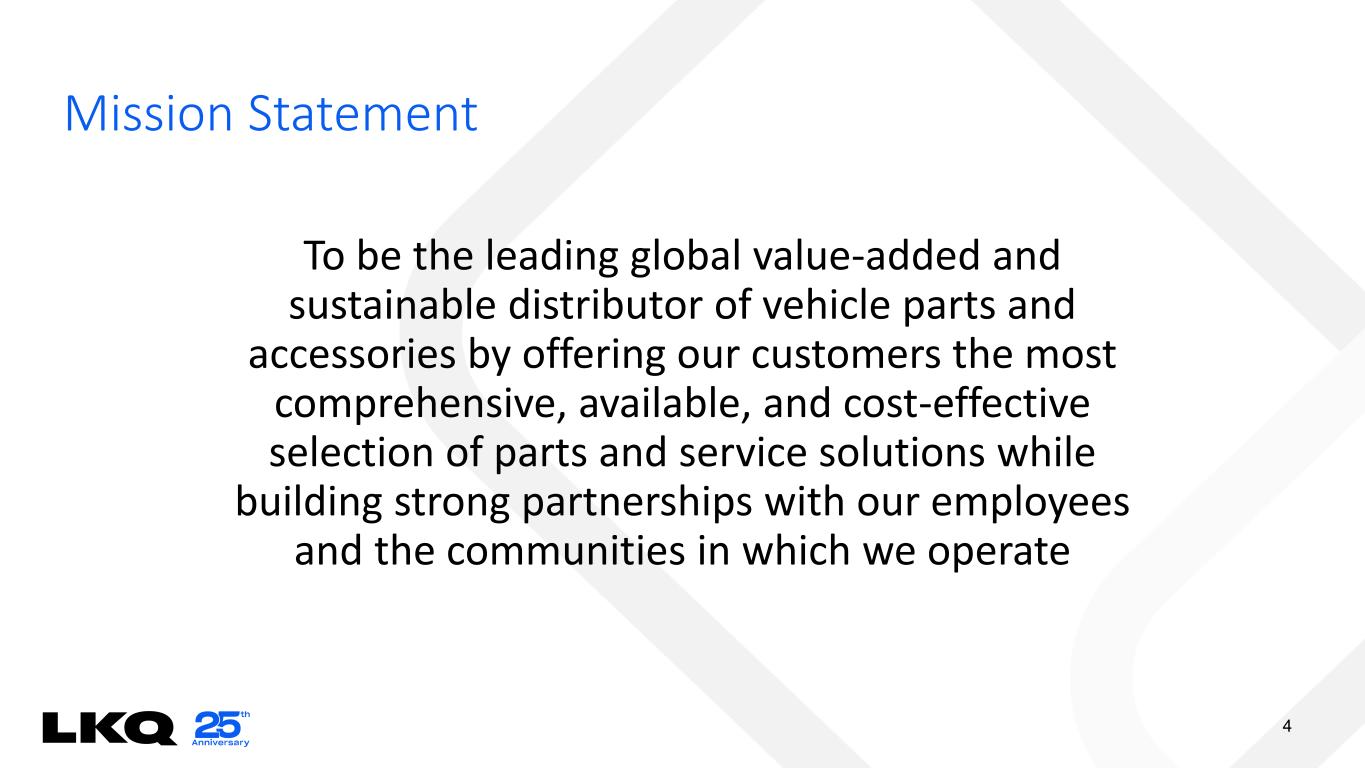Mission Statement To be the leading global value-added and sustainable distributor of vehicle parts and accessories by offering our customers the most comprehensive, available, and cost-effective selection of parts and service solutions while building strong partnerships with our employees and the communities in which we operate 4