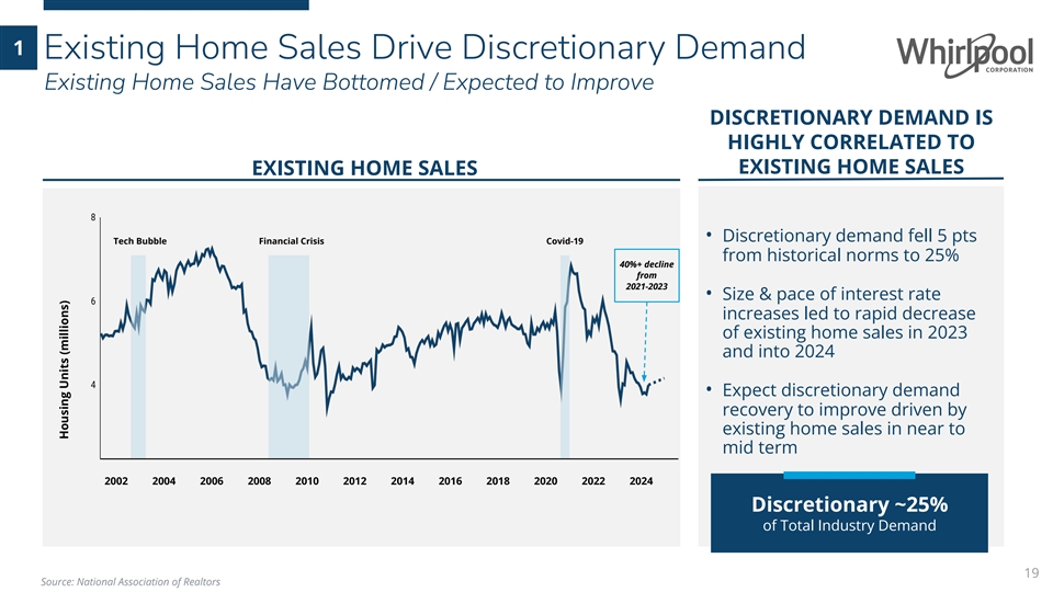 1 Replacement Demand Continues to Be Very Strong Overall 60 Appliance Industry Shipments Replacement 40 Demand 20 Stronger replacement demand Steady replacement demand Demand driven by discretionary driven by increased usage and with ~10 year replacement cycle / new construction shortened replacement cycle 2000 2010 2023 18 Source: AHAM Sell-in, Traqline Sell-out Appliance Units (millions)