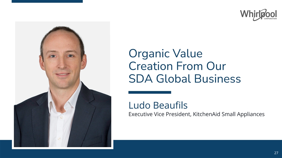 Organic Value Creation From Our SDA Global Business Ludo Beaufils Executive Vice President, KitchenAid Small Appliances 27