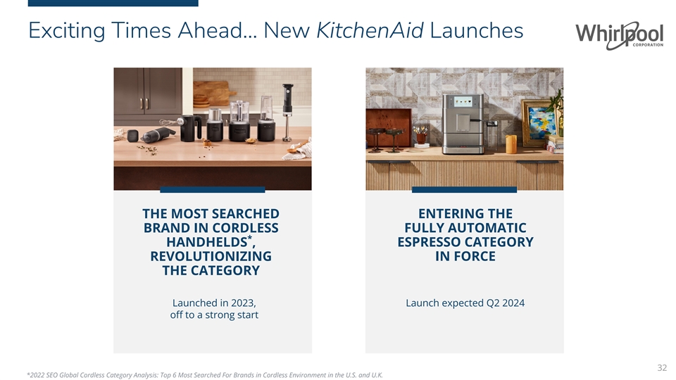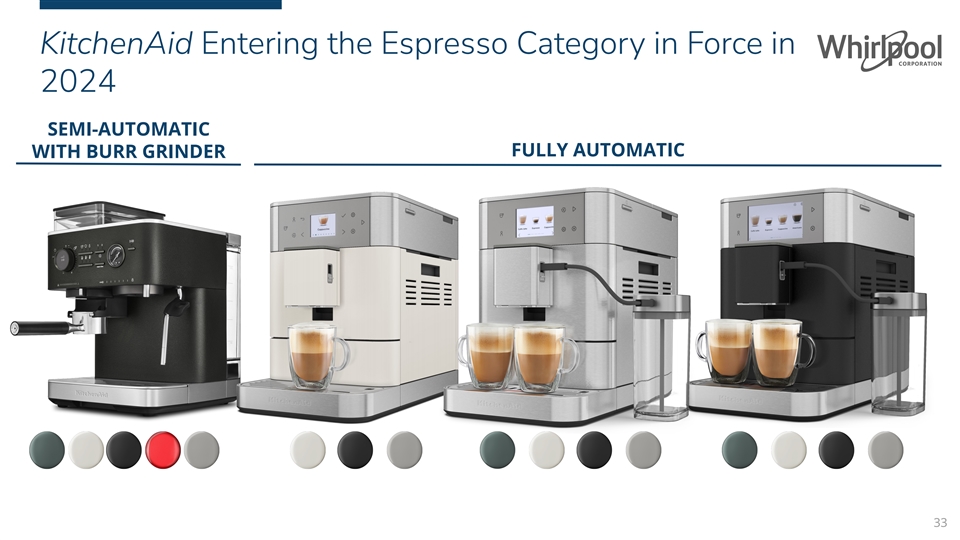 Exciting Times Ahead… New KitchenAid Launches THE MOST SEARCHED ENTERING THE BRAND IN CORDLESS FULLY AUTOMATIC * HANDHELDS , ESPRESSO CATEGORY REVOLUTIONIZING IN FORCE THE CATEGORY Launched in 2023, Launch expected Q2 2024 off to a strong start 32 *2022 SEO Global Cordless Category Analysis: Top 6 Most Searched For Brands in Cordless Environment in the U.S. and U.K.