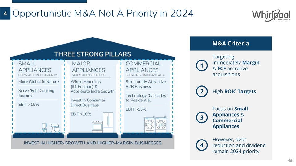 4 Opportunistic M&A Not A Priority in 2024 M&A Criteria Targeting immediately Margin 1 & FCF accretive acquisitions High ROIC Targets 2 Focus on Small Appliances & 3 Commercial Appliances However, debt 4 reduction and dividend remain 2024 priority 46