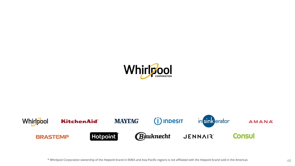 * Whirlpool Corporation ownership of the Hotpoint brand in EMEA and Asia Pacific regions is not affiliated with the Hotpoint brand sold in the Americas 48