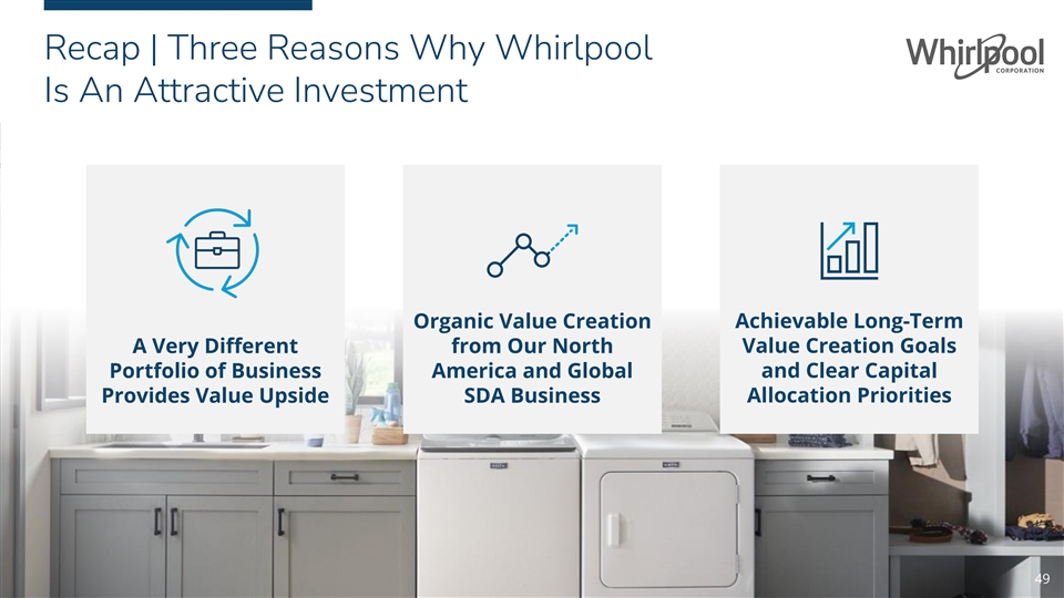 Recap | Three Reasons Why Whirlpool Is An Attractive Investment Achievable Long-Term Organic Value Creation A Very Different from Our North Value Creation Goals Portfolio of Business America and Global and Clear Capital Provides Value Upside SDA Business Allocation Priorities 49 49 49