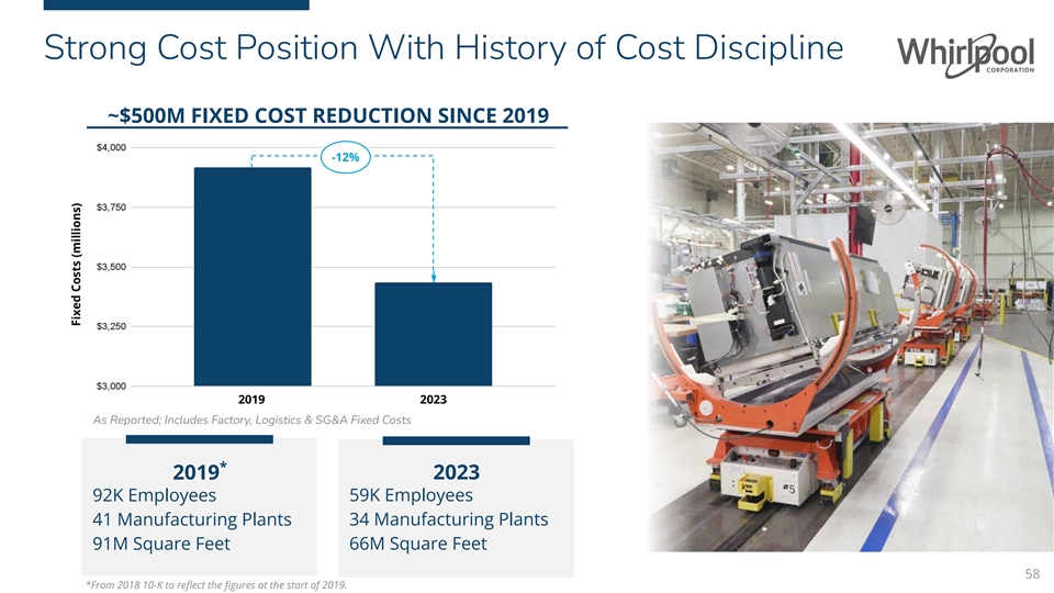 Strong Cost Position With History of Cost Discipline ~$500M FIXED COST REDUCTION SINCE 2019 -12% 2019 2023 As Reported; Includes Factory, Logistics & SG&A Fixed Costs * 2019 2023 59K Employees 92K Employees 41 Manufacturing Plants 34 Manufacturing Plants 91M Square Feet 66M Square Feet 58 *From 2018 10-K to reflect the figures at the start of 2019. Fixed Costs (millions)