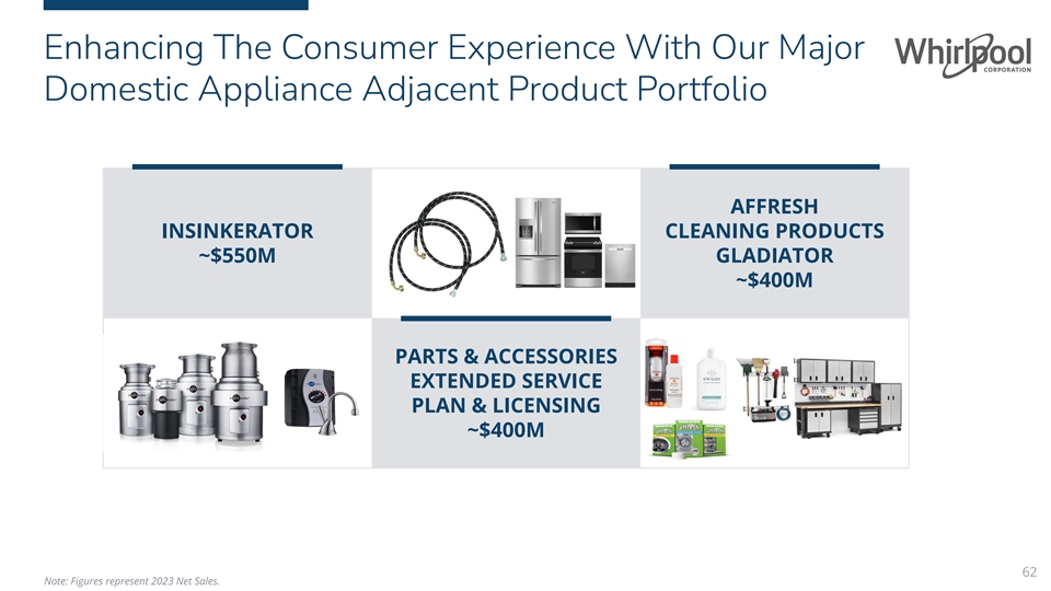 Enhancing The Consumer Experience With Our Major Domestic Appliance Adjacent Product Portfolio AFFRESH INSINKERATOR CLEANING PRODUCTS ~$550M GLADIATOR ~$400M PARTS & ACCESSORIES EXTENDED SERVICE PLAN & LICENSING ~$400M 62 Note: Figures represent 2023 Net Sales.