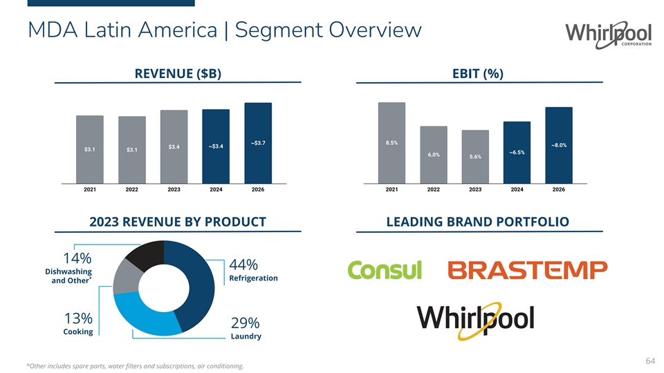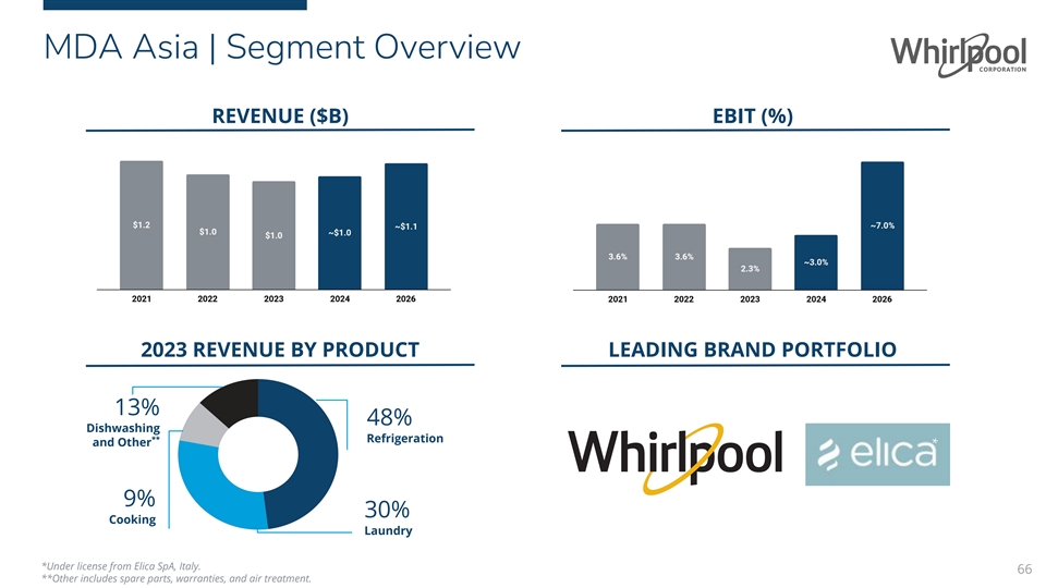 MDA Latin America Well Positioned With Two Exceptional Brands In Latin America #1 Share Position 2026 Expectations Total Brazil and Mexico annual 20M+ Units industry $3.4B ~$3.7B 2023 Revenue 2026 Revenue Brastemp #1; Consul #3 and is #1 and #3 Most * found in 55%+ of Brazilian homes Preferred Brands 5.6% ~8.0% Opened $52M manufacturing 2023 EBIT % 2026 EBIT % 12K+ Employees location in Argentina in 2022 8 Manufacturing Local brands target ~80% of ** consumers in Brazil Plants *Brand preference is based on 2023 Brand Guidance Study provided by KANTAR Insights; the presence of Consul is based on KANTAR installed park study in 2022. 65 ** Mass through super premium; based on Brand Guidance Study provided by KANTAR Insights. Brastemp consumer target is 25 to 65 years old.