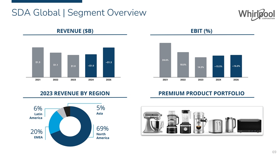 SDA Global | Segment Overview REVENUE ($B) EBIT (%) 2023 REVENUE BY REGION PREMIUM PRODUCT PORTFOLIO 5% 6% Asia Latin America 69% 20% North EMEA America 69