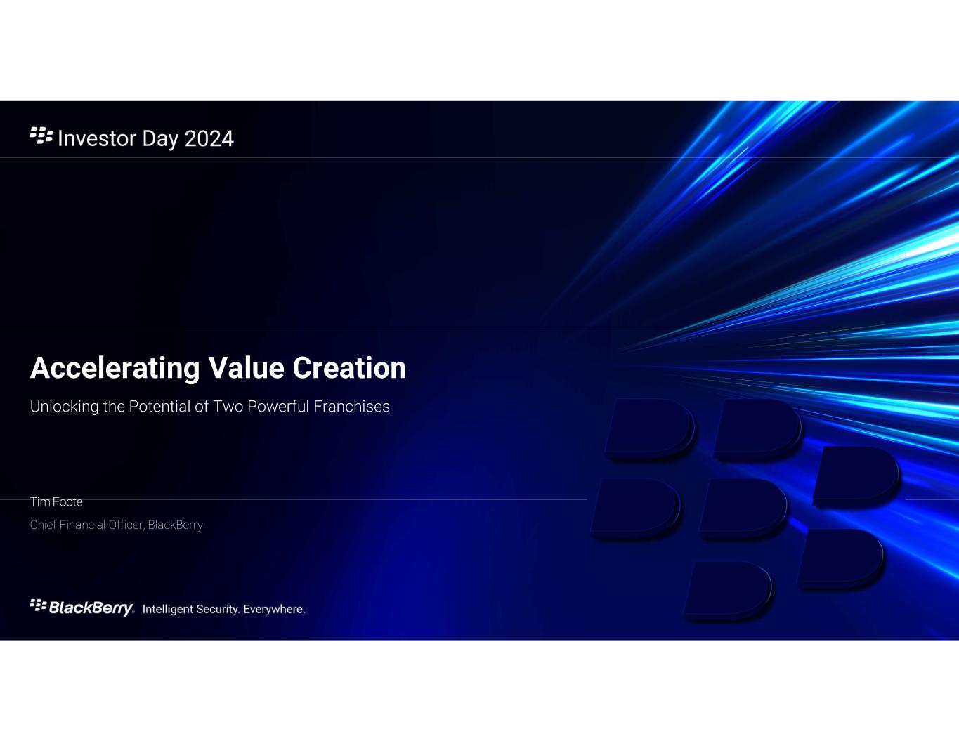 © 2024 BlackBerry. All Rights Reserved Accelerating Value Creation Tim Foote Chief Financial Officer, BlackBerry Unlocking the Potential of Two Powerful Franchises