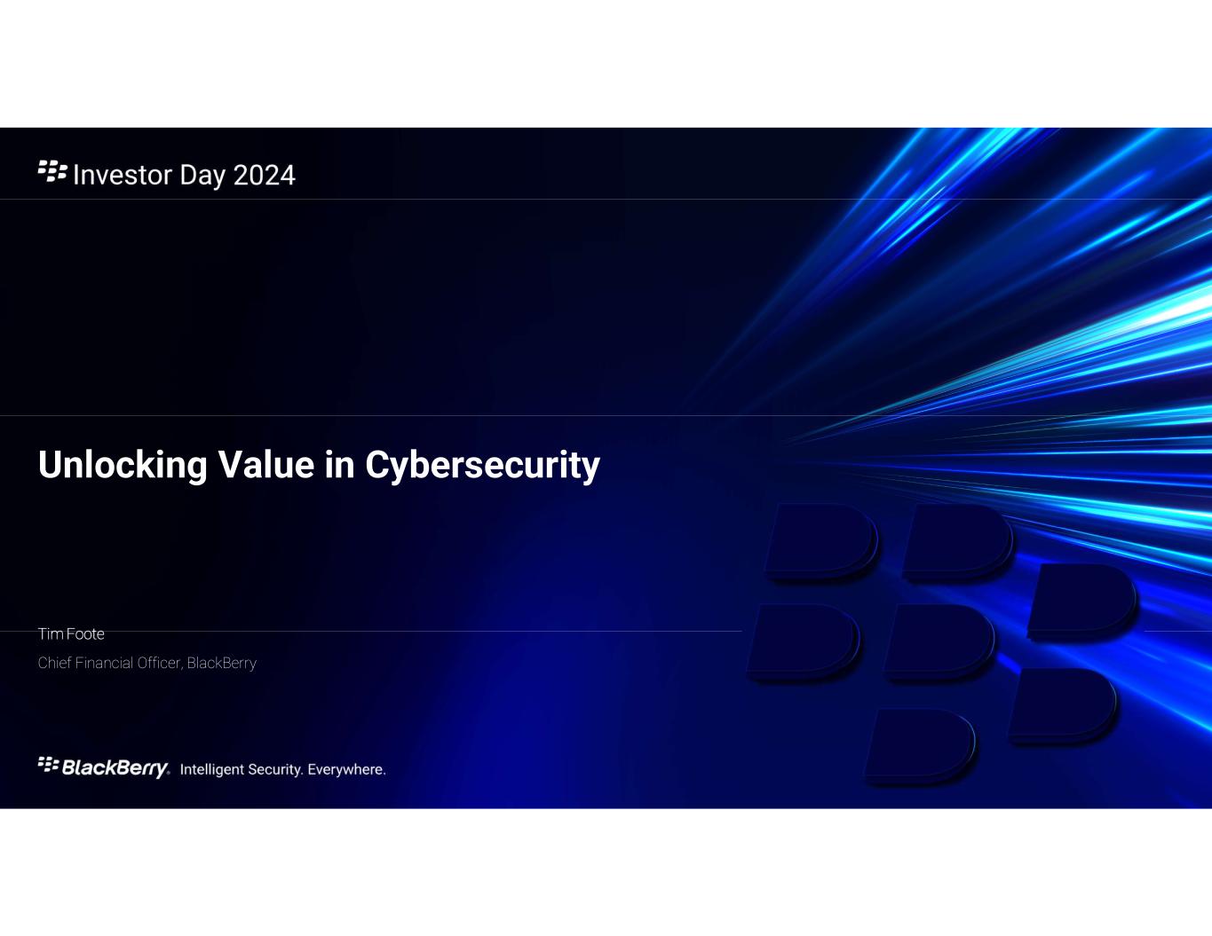 © 2024 BlackBerry. All Rights Reserved Unlocking Value in Cybersecurity Tim Foote Chief Financial Officer, BlackBerry