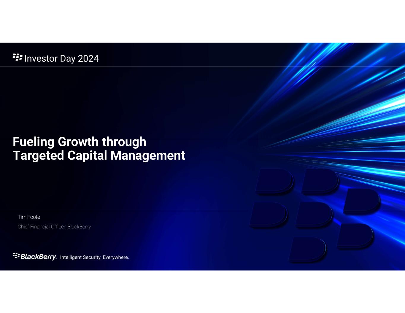 © 2024 BlackBerry. All Rights Reserved Fueling Growth through Targeted Capital Management Tim Foote Chief Financial Officer, BlackBerry