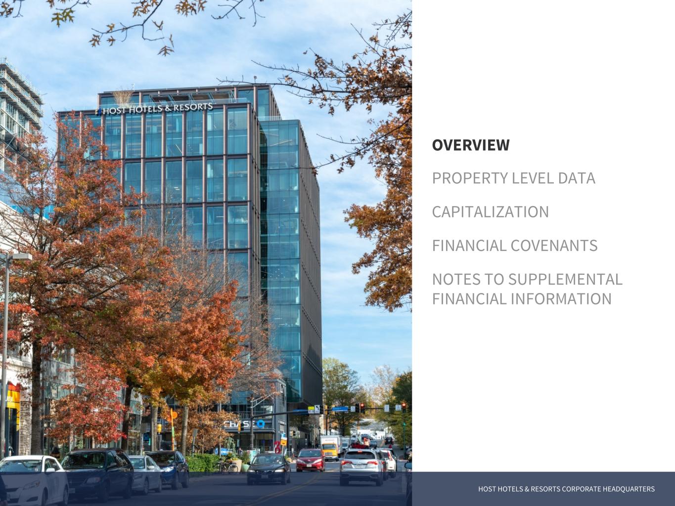 OVERVIEW PROPERTY LEVEL DATA CAPITALIZATION FINANCIAL COVENANTS NOTES TO SUPPLEMENTAL FINANCIAL INFORMATION HOST HOTELS & RESORTS CORPORATE HEADQUARTERS