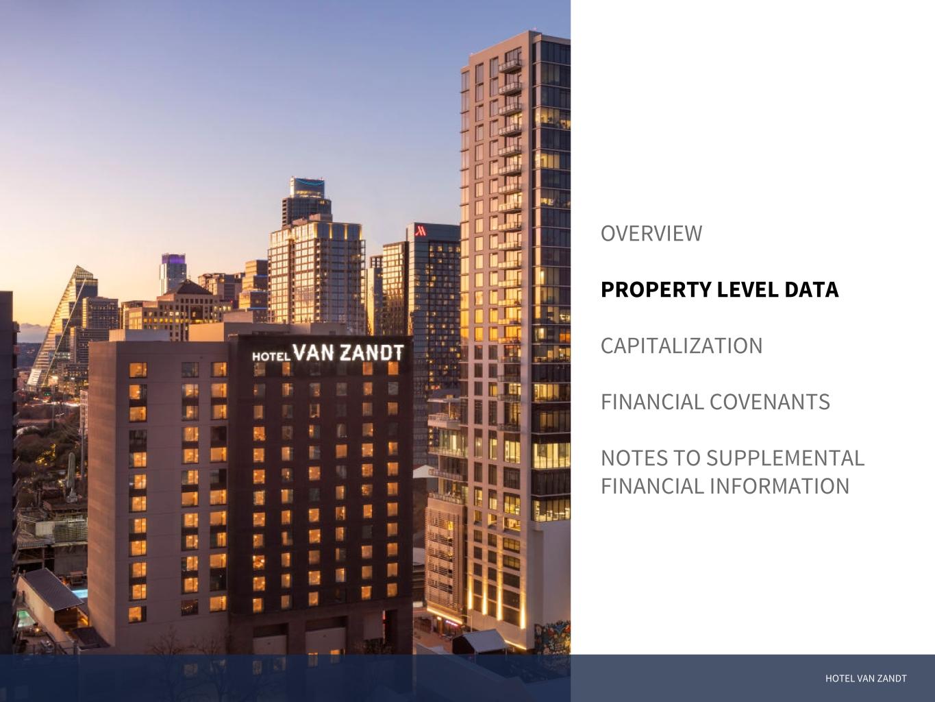 HOTEL VAN ZANDT OVERVIEW PROPERTY LEVEL DATA CAPITALIZATION FINANCIAL COVENANTS NOTES TO SUPPLEMENTAL FINANCIAL INFORMATION