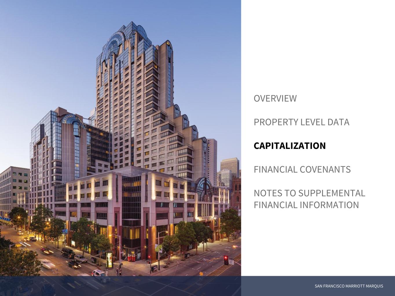 SAN FRANCISCO MARRIOTT MARQUIS OVERVIEW PROPERTY LEVEL DATA CAPITALIZATION FINANCIAL COVENANTS NOTES TO SUPPLEMENTAL FINANCIAL INFORMATION