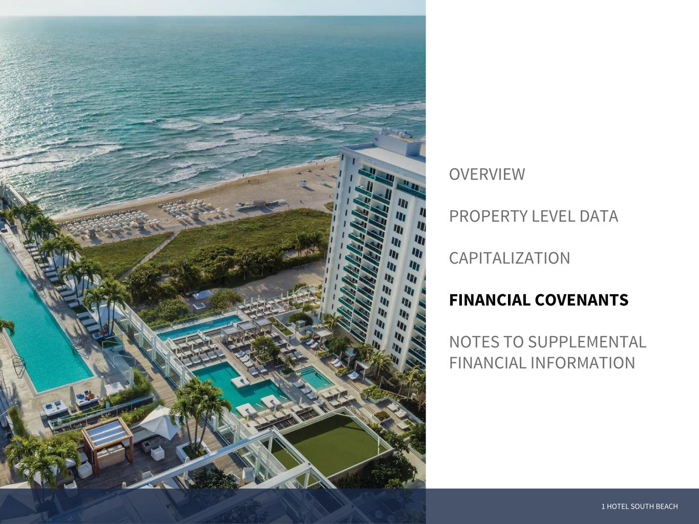 1 HOTEL SOUTH BEACH OVERVIEW PROPERTY LEVEL DATA CAPITALIZATION FINANCIAL COVENANTS NOTES TO SUPPLEMENTAL FINANCIAL INFORMATION