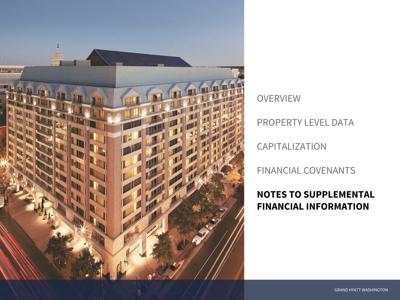GRAND HYATT WASHINGTON OVERVIEW PROPERTY LEVEL DATA CAPITALIZATION FINANCIAL COVENANTS NOTES TO SUPPLEMENTAL FINANCIAL INFORMATION