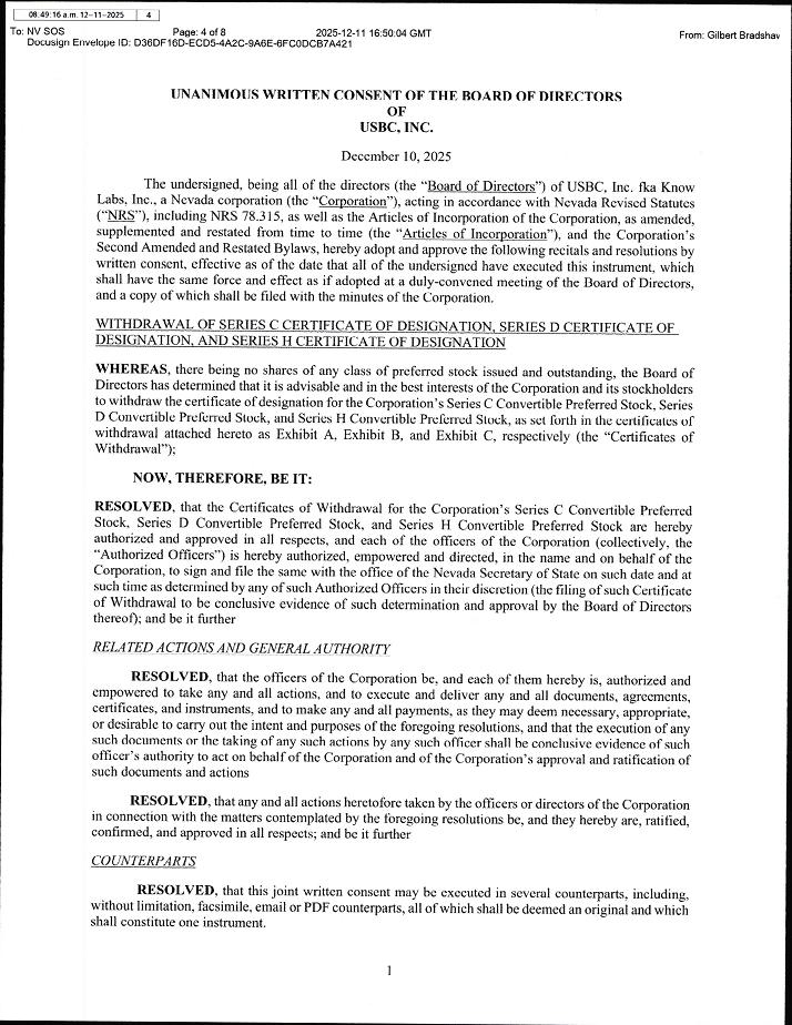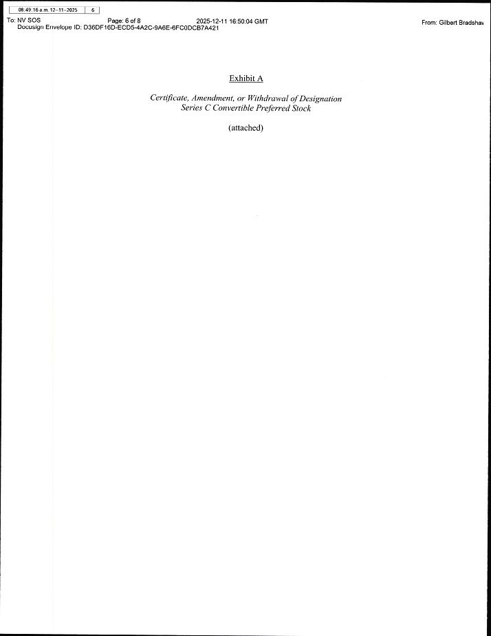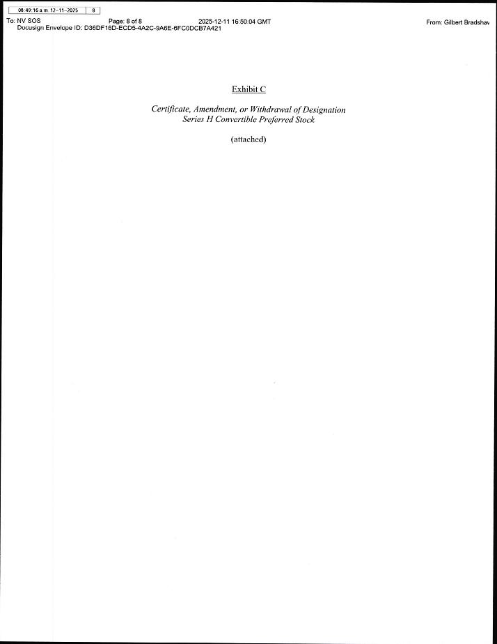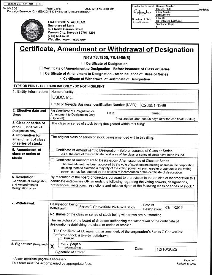 EX-3 2 ex_3-1.htm CERTIFICATE, AMENDMENT OR WITHDRAWAL OF DESIGNATION - SERIES C PREFERRED STOCK