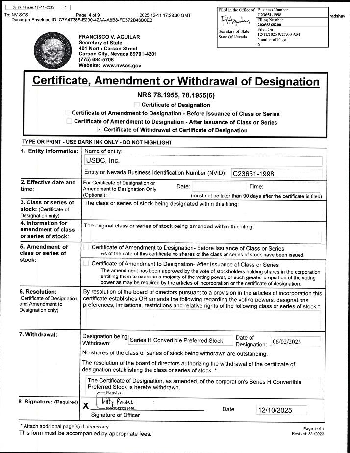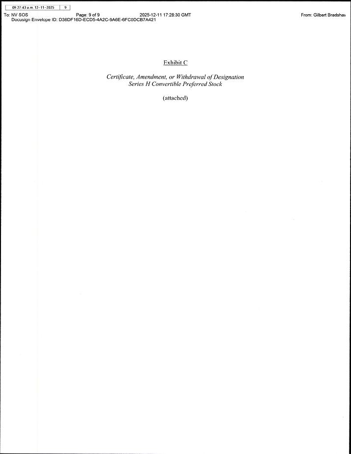 EX-3 4 ex_3-3.htm CERTIFICATE, AMENDMENT OR WITHDRAWAL OF DESIGNATION - SERIES H PREFERRED STOCK