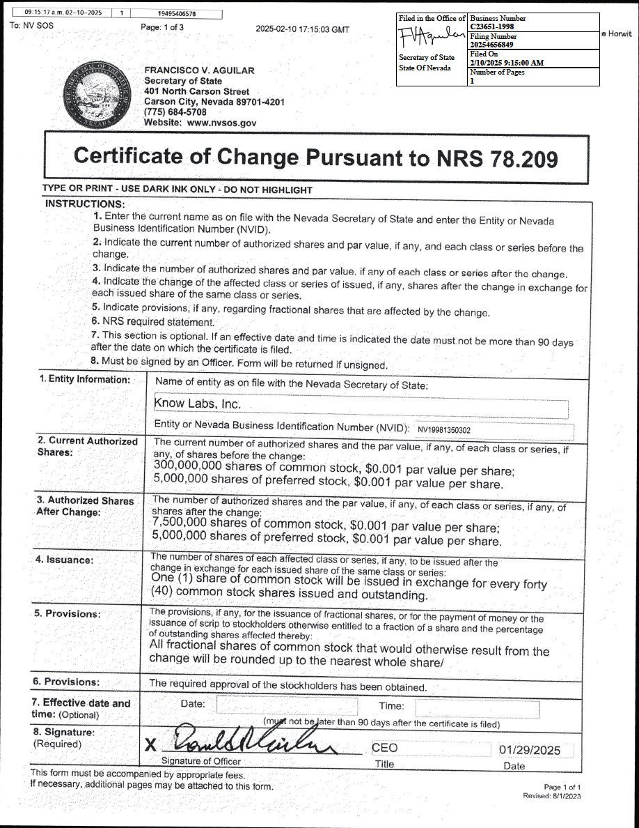 EX-3.1 2 knwn_ex31.htm EX-3.1 knwn_ex31.htm