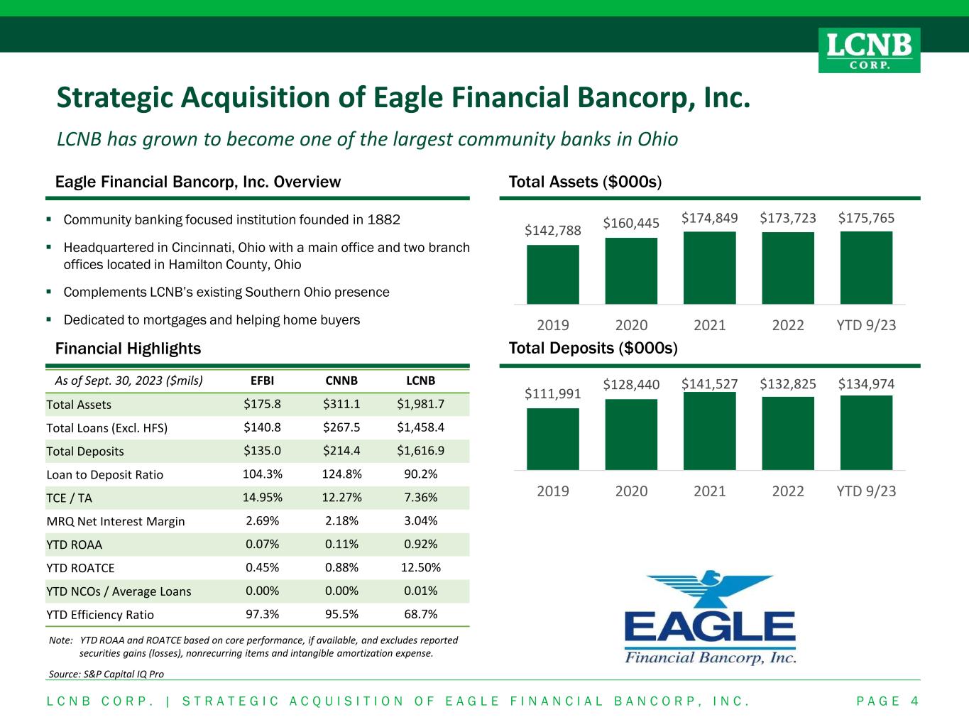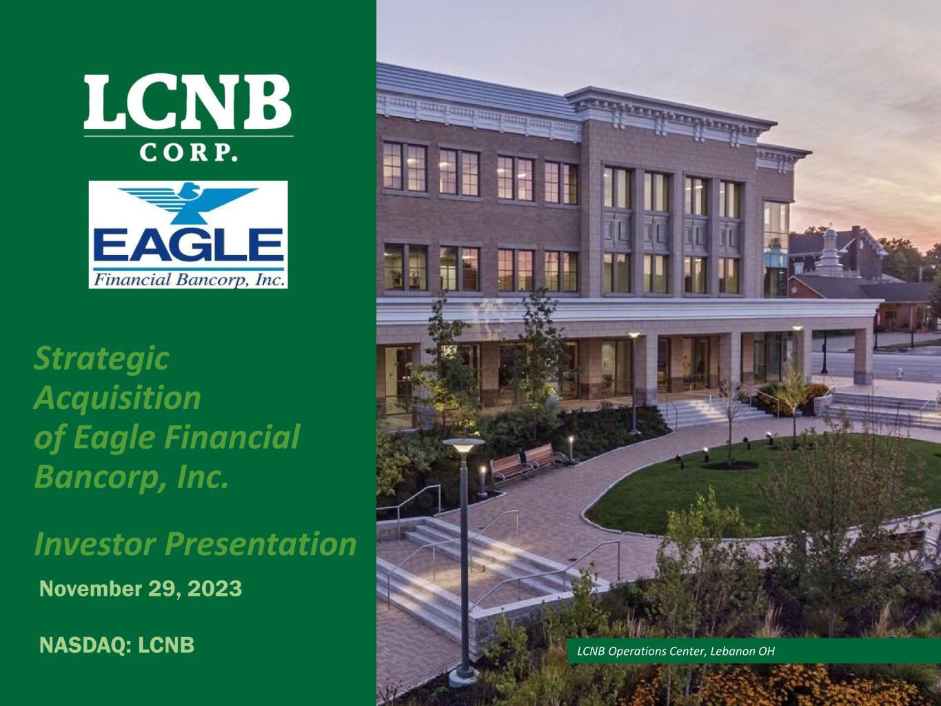LCNB Operations Center, Lebanon OH Investor Presentation November 29, 2023 NASDAQ: LCNB Strategic Acquisition of Eagle Financial Bancorp, Inc.