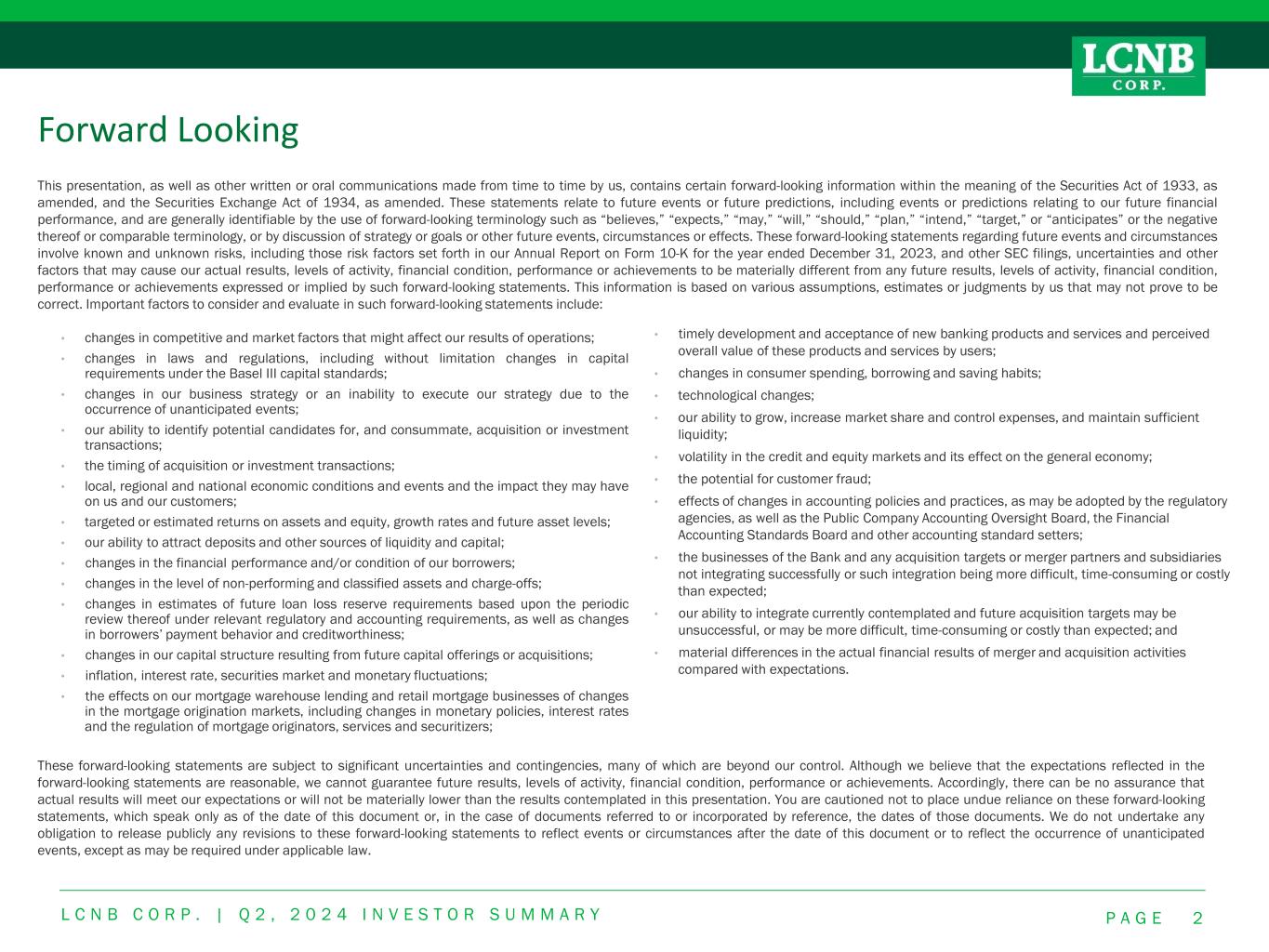 LCNB Operations Center, Lebanon OH Investor Presentation Second Quarter 2024 NASDAQ: LCNB