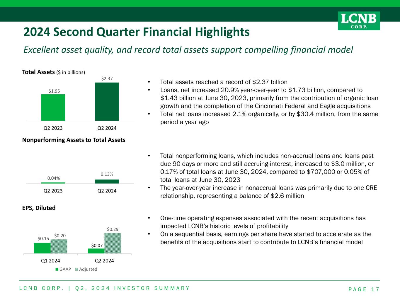 Financial and Operating Highlights LCNB Corp. | Q2, 2024 Investor Presentation
