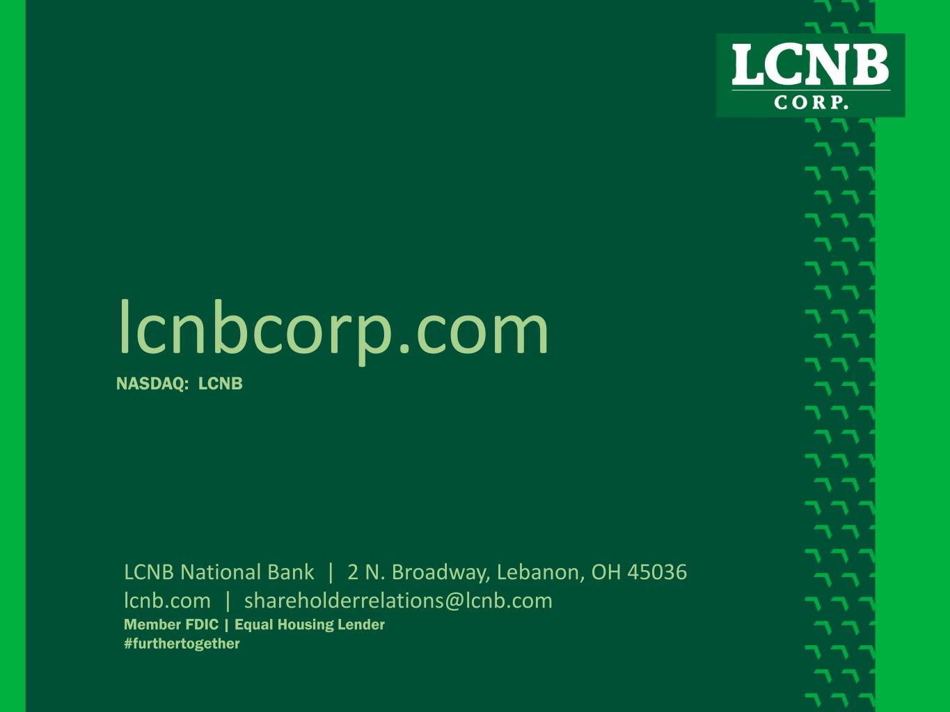 35 lcnbcorp.com NASDAQ: LCNB LCNB National Bank | 2 N. Broadway, Lebanon, OH 45036 lcnb.com | shareholderrelations@lcnb.com Member FDIC | Equal Housing Lender #furthertogether