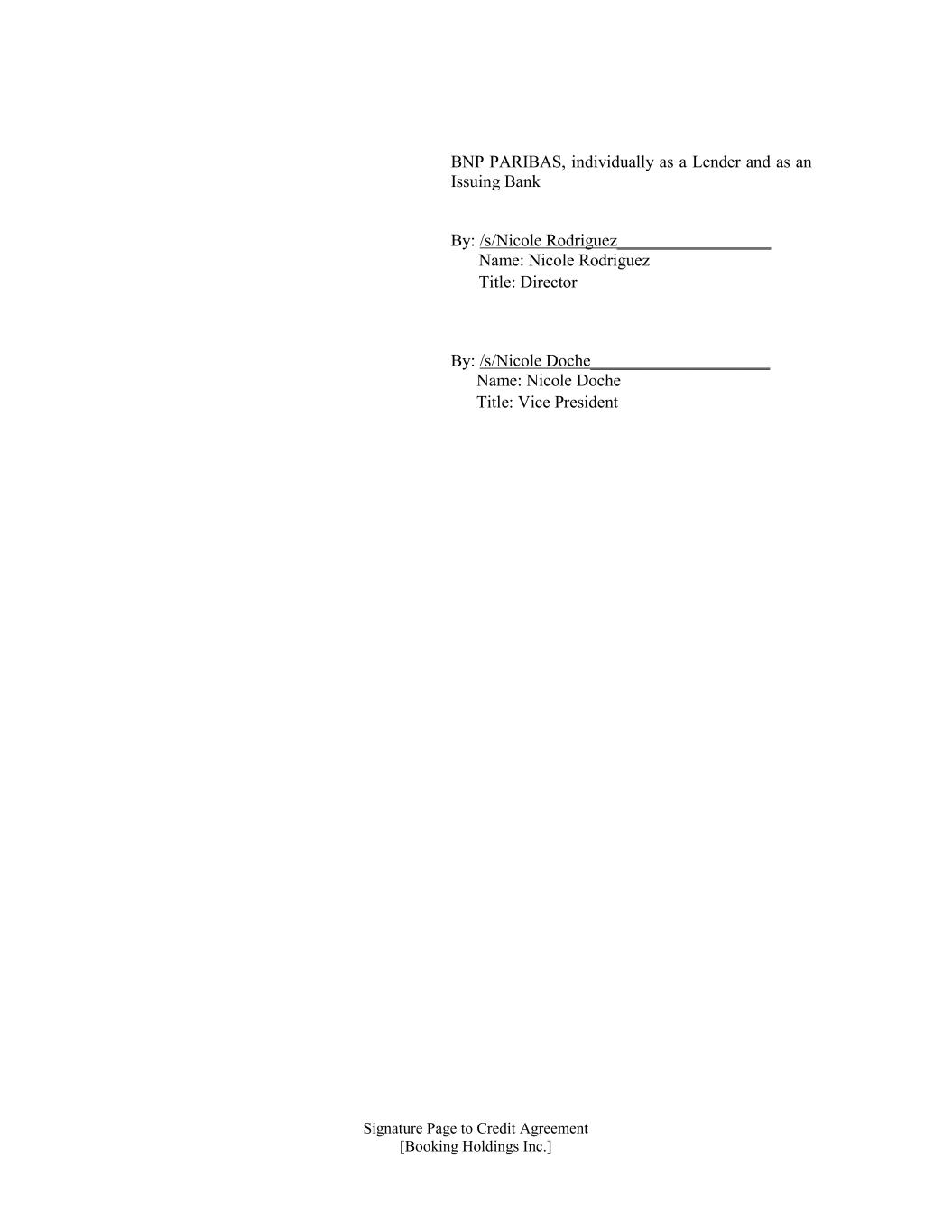 Signature Page to Credit Agreement [Booking Holdings Inc.] BNP PARIBAS, individually as a Lender and as an Issuing Bank By: /s/Nicole Rodriguez__________________ Name: Nicole Rodriguez Title: Director By: /s/Nicole Doche_____________________ Name: Nicole Doche Title: Vice President
