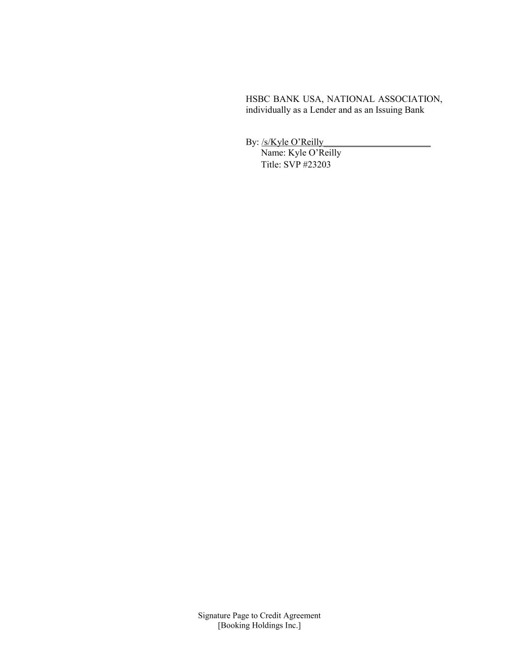 Signature Page to Credit Agreement [Booking Holdings Inc.] HSBC BANK USA, NATIONAL ASSOCIATION, individually as a Lender and as an Issuing Bank By: /s/Kyle O’Reilly_______________________ Name: Kyle O’Reilly Title: SVP #23203
