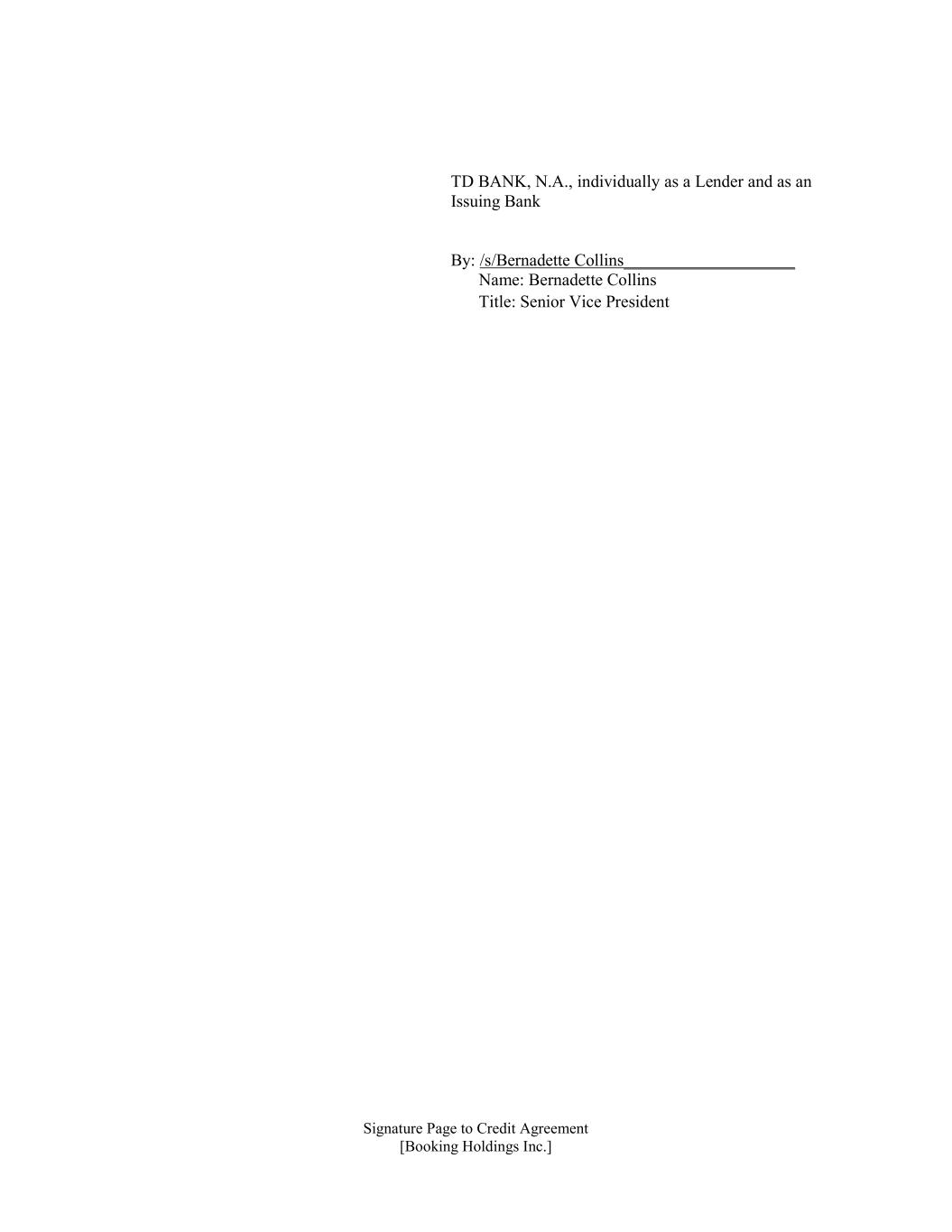 Signature Page to Credit Agreement [Booking Holdings Inc.] TD BANK, N.A., individually as a Lender and as an Issuing Bank By: /s/Bernadette Collins____________________ Name: Bernadette Collins Title: Senior Vice President