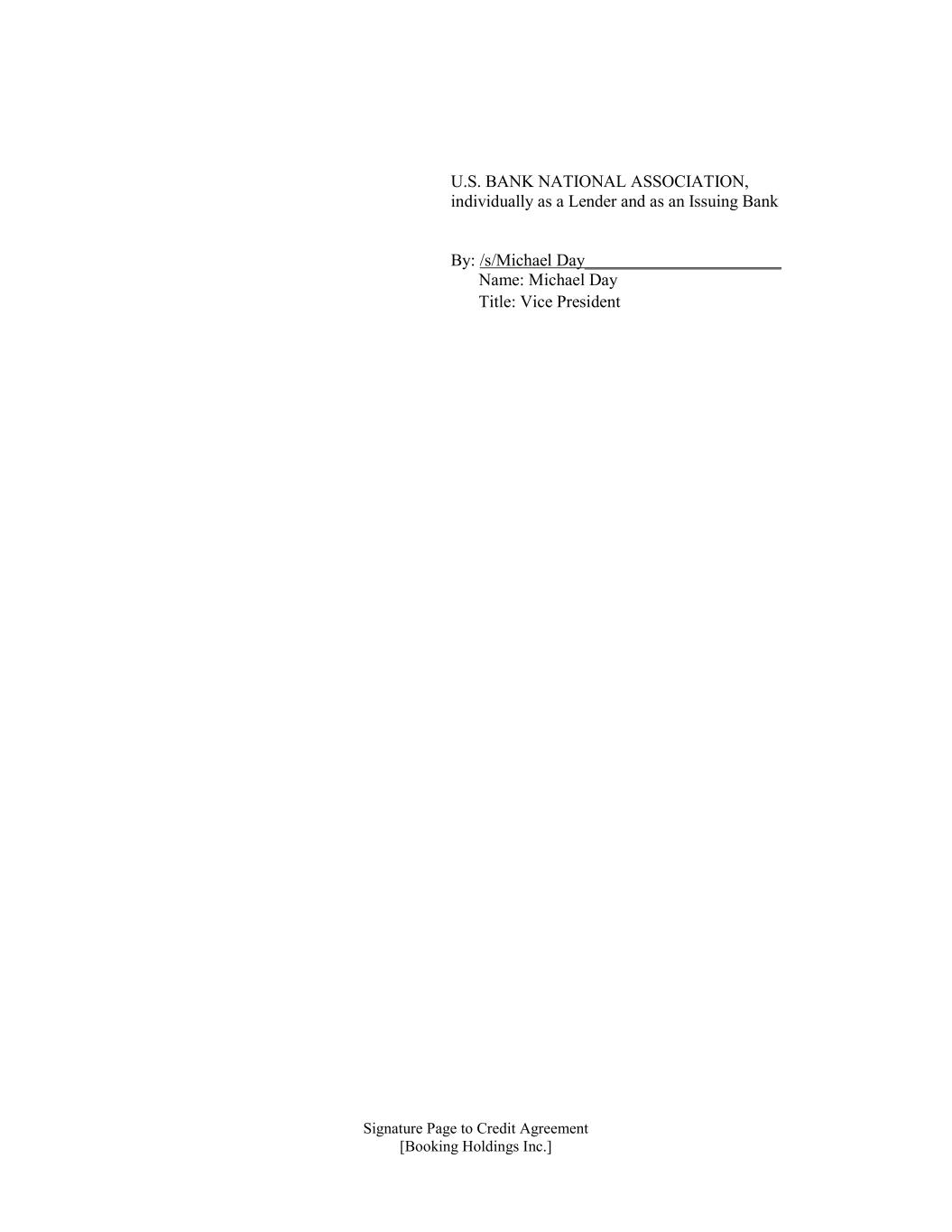 Signature Page to Credit Agreement [Booking Holdings Inc.] U.S. BANK NATIONAL ASSOCIATION, individually as a Lender and as an Issuing Bank By: /s/Michael Day_______________________ Name: Michael Day Title: Vice President