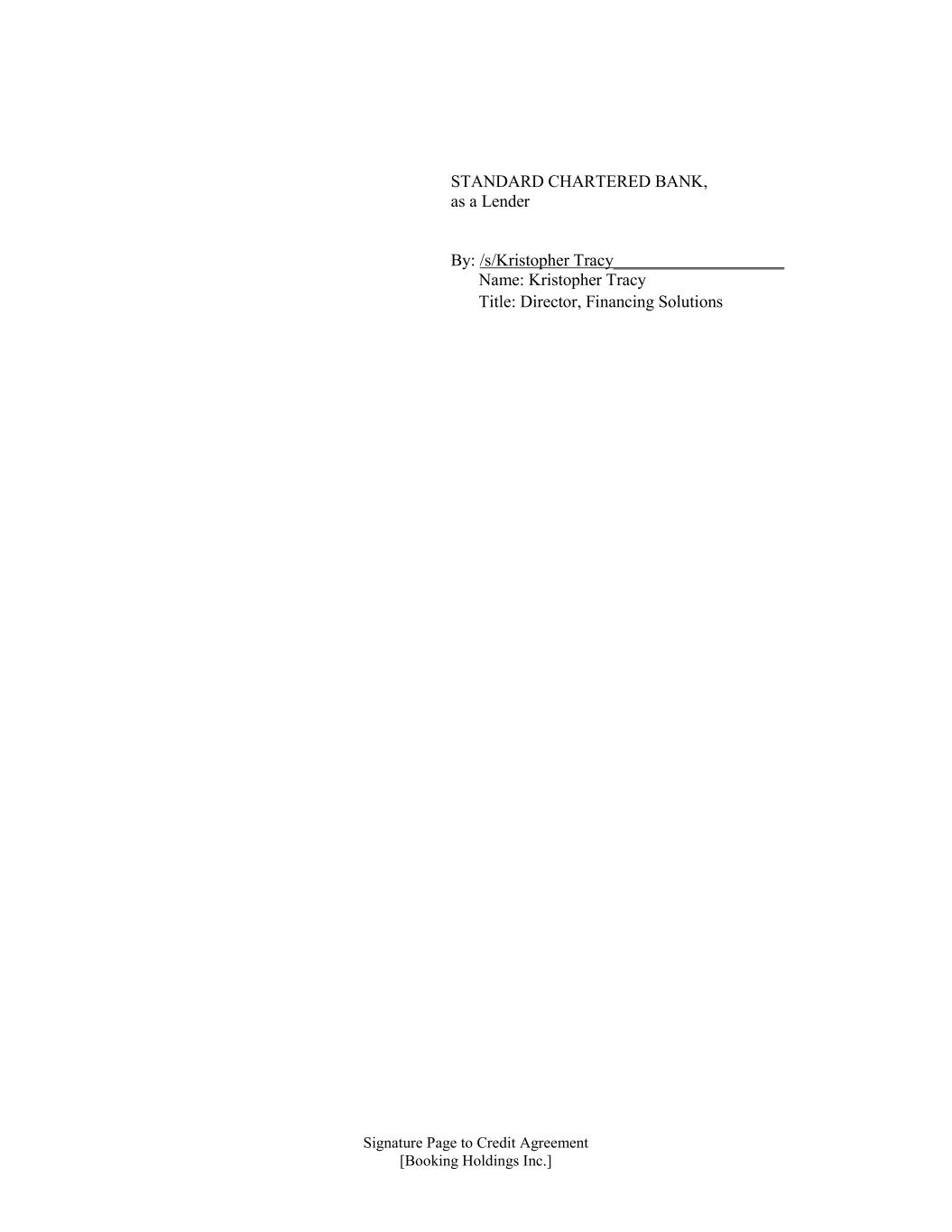 Signature Page to Credit Agreement [Booking Holdings Inc.] STANDARD CHARTERED BANK, as a Lender By: /s/Kristopher Tracy____________________ Name: Kristopher Tracy Title: Director, Financing Solutions