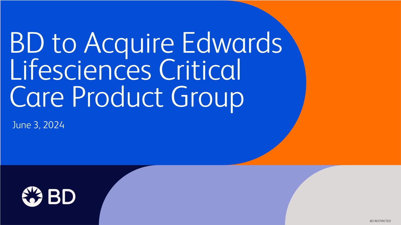 BD RESTRICTED BD to Acquire Edwards Lifesciences Critical Care Product Group June 3, 2024